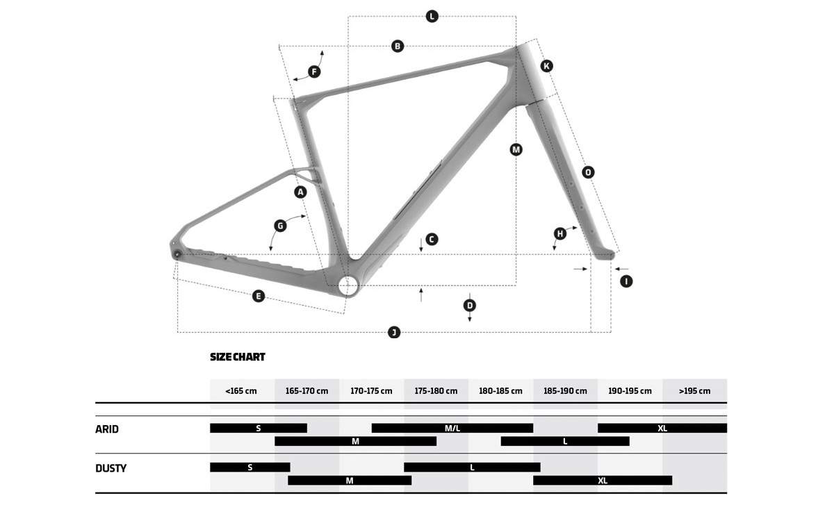 The Arid is available in five sizes: S, M, M/L, L, and XL, accommodating a wide range of riders. It supports up to 50mm wide tires, making it suitable for various terrains.